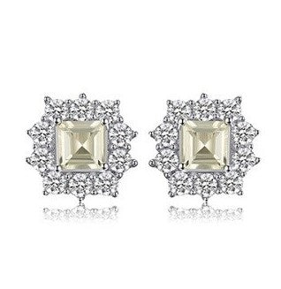 Beschrijving: Deze fijne kleine Lemon Topaas oorbellen hebben een gedetailleerd ontwerp van 0,257 karaat Square Cut Lemon Topaas per oorbel (0,55 ct in totaal), 4*4 mm omgeven door 10 diamantsimulanten gezet in 92,5% fijn zilver.