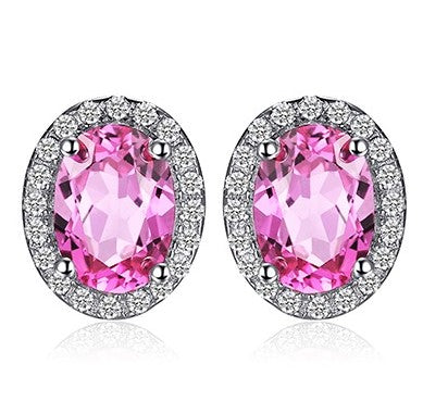 Beschrijving: Deze gemaakte ovale roze Ruby-oorknopjes zijn voorzien van een 1.075 karaat ovale geslepen robijn uit Zwitserland als belangrijkste edelsteen per oorbel (2,15 karaat in totaal). De roze robijn is gemaakt van 92,5% puur zilver en wordt omgeven door 20 diamantsimulanten. Met deze set oorbellen zie je er schattig uit.