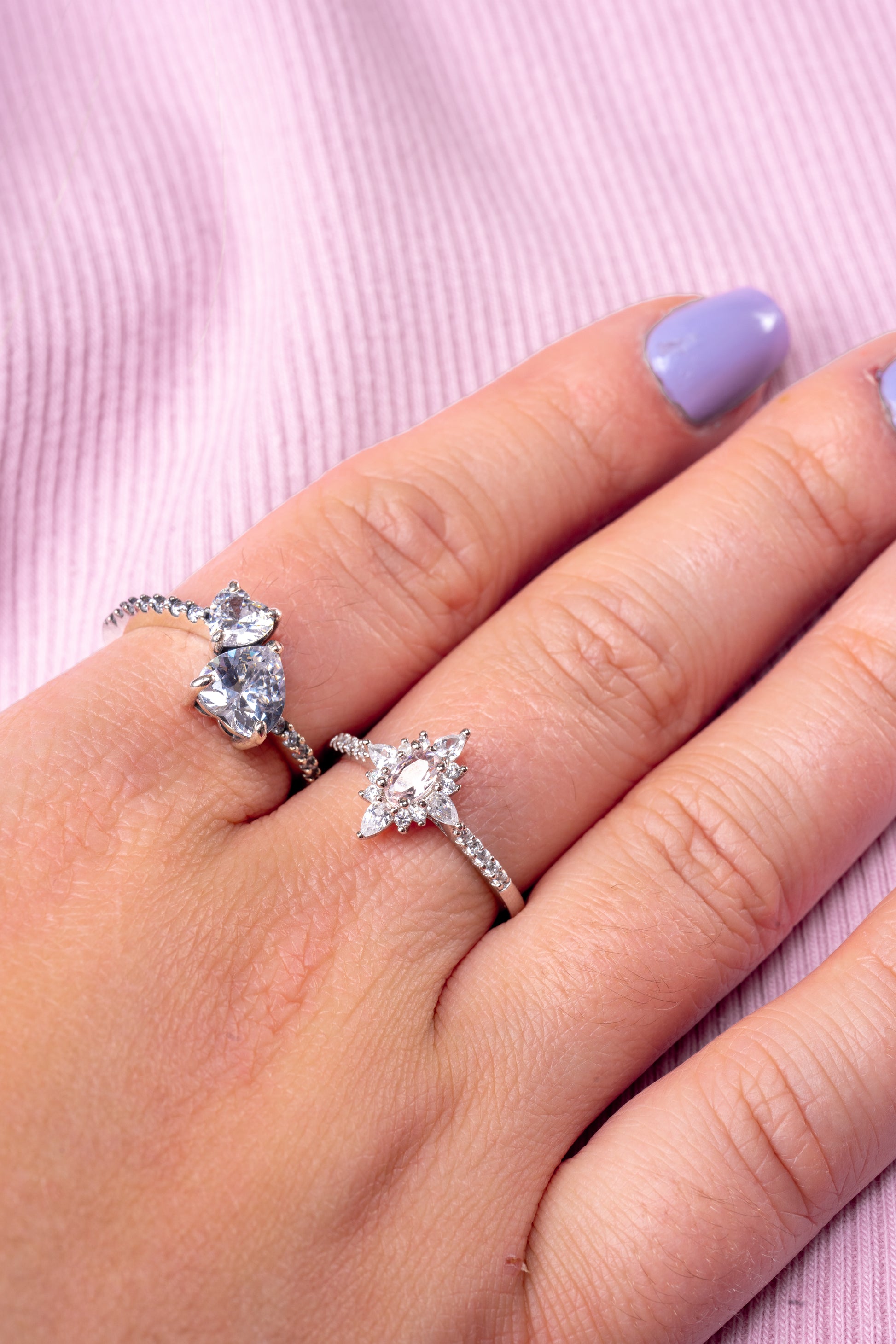 Beschrijving: Deze spectaculaire gesimuleerde Morganite-stenen ring bevat een 2-karaats Morganite-steen en 4 prachtige ovaal geslepen diamantensimulanten en 6 kleinere diamantensimulanten . De edelstenen zijn gezet in een band van 92,5% puur zilver. De opstelling van de edelstenen geeft een majestueus gevoel aan het ontwerp.