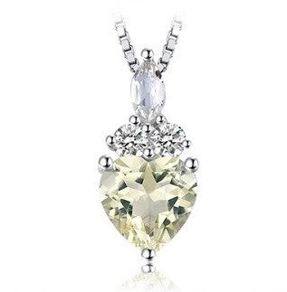 Beschrijving: Deze fijne Lemon Topaz-hanger heeft een gedetailleerd ontwerp van 1,12 karaat Heart Cut Lemon Topaz. 7*7mm omgeven door 3 grotere diamantsimulanten gezet in 92,5% fijn zilver.