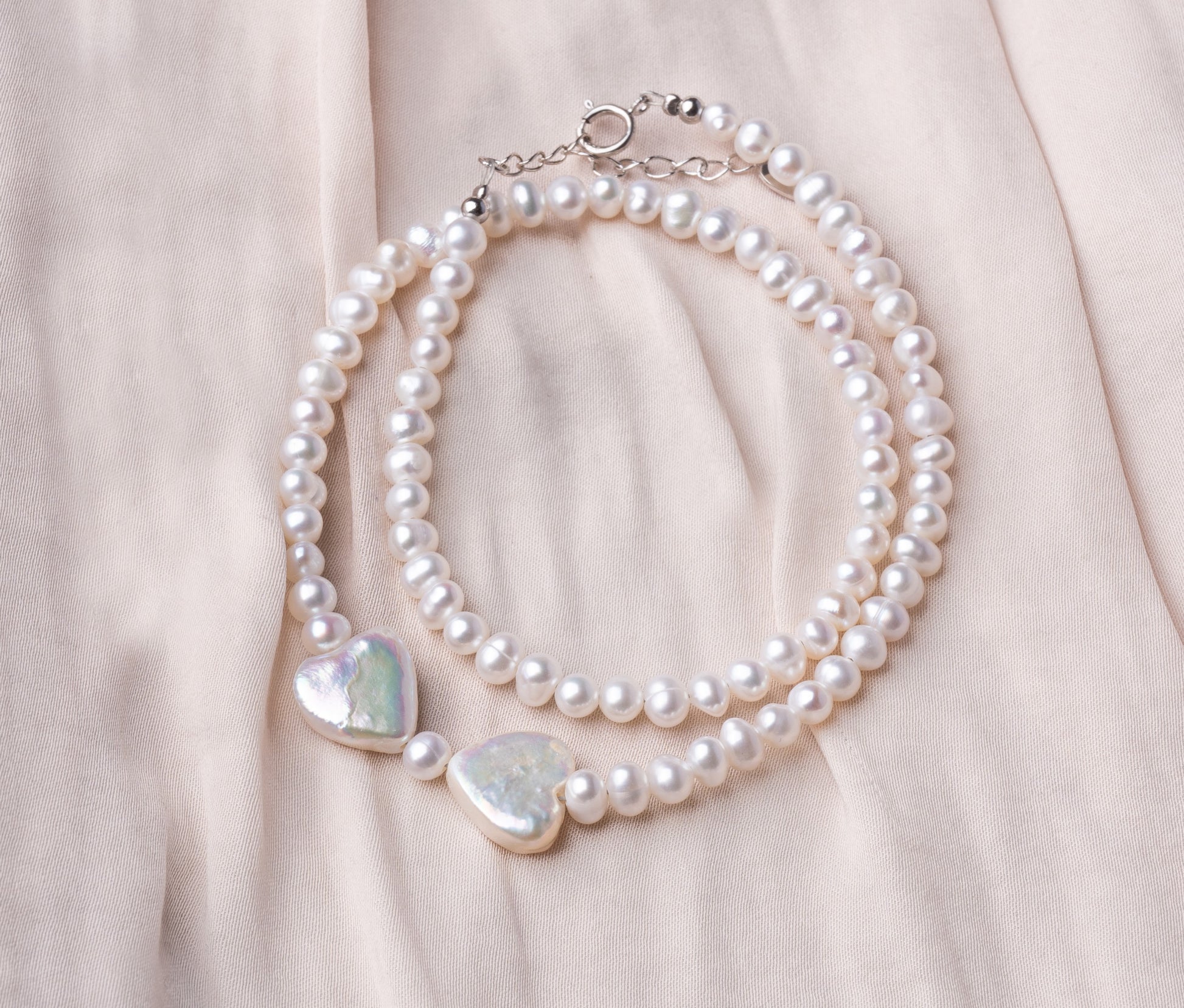 Echte parels : deze echte parels zijn echte parels van hoge kwaliteit, gekweekt in mosselen uit zoetwatermeren; ze hebben een geweldige natuurlijke kleur, glans en een glad oppervlak en zijn 100% puur en bestaan alleen uit parelmoer (parelmoer), aangezien er geen ander materiaal (kern van de schelpkraal) in het midden zit.