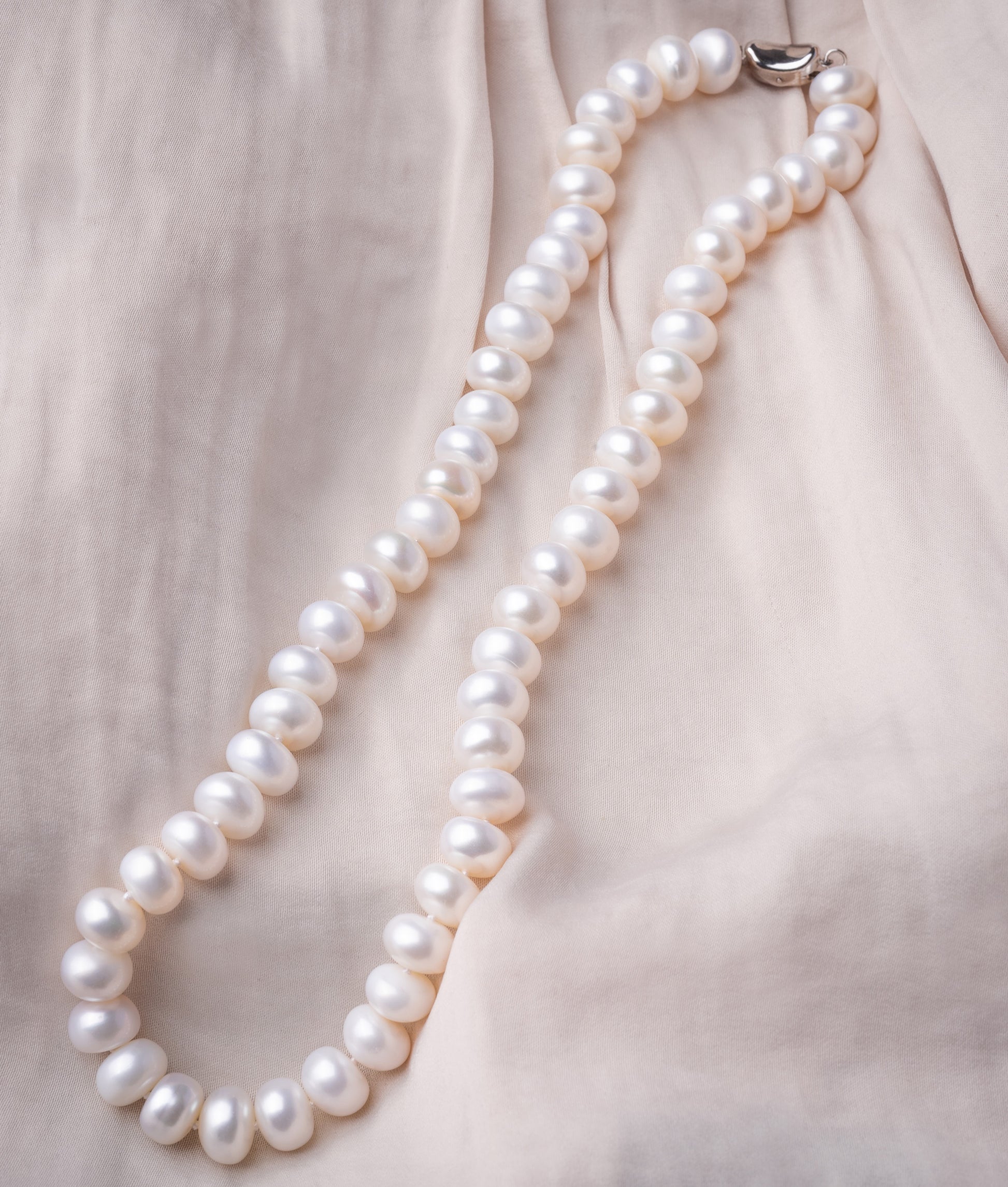 Beschrijving: Deze koninklijke parelketting voor dames telt maar liefst 54 echte kostbare parels. De echte parels van 8-9 mm worden vastgehouden door een zeer sterk koord. De ovale vorm, hoge glans en ivoorwitte kleur van deze prachtige parels zijn allemaal natuurlijk. Deze parelhuwelijksketting is perfect voor bruiden en alle dames.